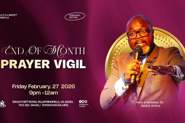 February 16, 2026 Posted By: ICGCVA Editor Announcements No comments yetThe February Edition of our End-of-Month Half Night Prayer Vigil is on the last Friday of the month, February 27, 2026 at 9pm. Don’t miss it and don’t come alone. It will be an intense and fiery night of prayer.