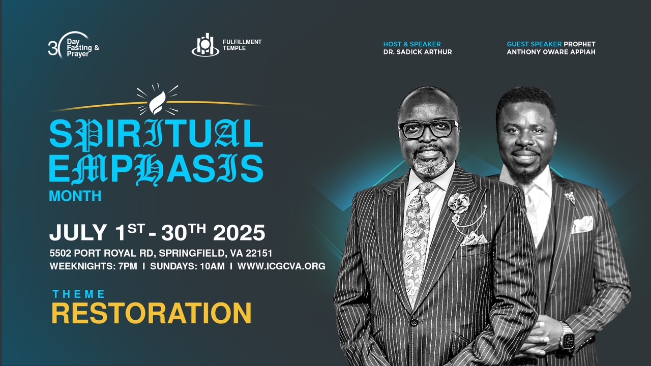 We are honored to welcome Prophet Anthony Oware Appiah, acclaimed prophet and revivalist with unquestionable and proven results in his ministry, as our special guest speaker. His powerful prophetic ministration and testimony will uplift and inspire as we come together in prayer and worship.