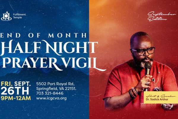 The September Edition of the monthly prayer vigil is on Friday, September 26, 2025 from 9PM to 12AM. Remember: God answers when we pray. If there is a man to pray, there is a God to answer.