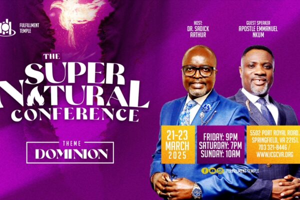 Join us at our spring conference, The Supernatural. 3 days of power, 3 days of presence, 3 days with Apostle Emmanuel Nkum. From Friday, March 21 to Sunday, March 23, 2025. Details on the flyer.