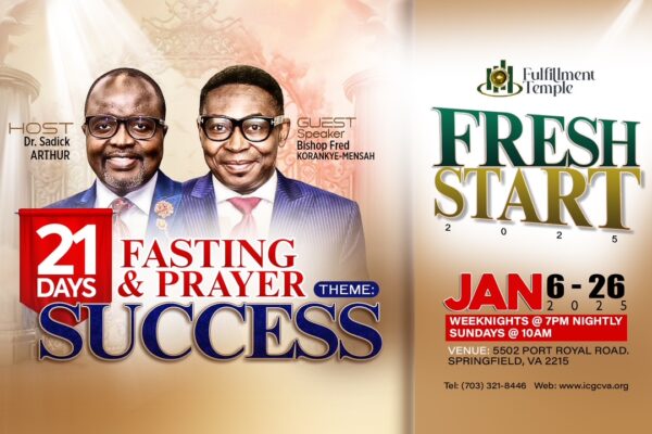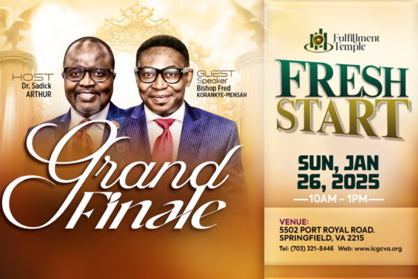 This Sunday at 10AM is the Grand Finale with Guest Preacher, Bishop Fred Korankye Mensah. Let’s end Fresh Start 2025 strong. There is a Fresh, New Beginning in God for you.