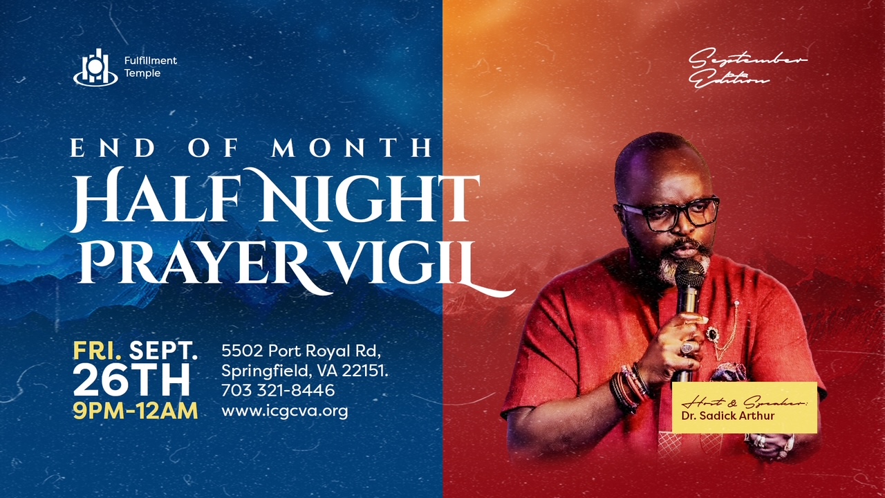 The September Edition of the monthly prayer vigil is on Friday, September 26, 2025 from 9PM to 12AM. Remember: God answers when we pray. If there is a man to pray, there is a God to answer.