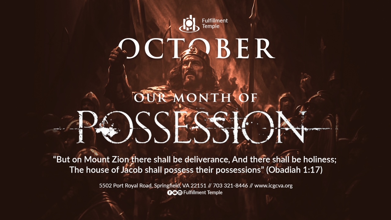 As a Church, we’re declaring October our month of POSSESSION. We’re trusting God to take possession of every blessing He’s mapped out for us. Obadiah 1:17 says, “But on Mount Zion there shall be deliverance, and there shall be holiness; The house of Jacob shall possess their possessions.” In Jesus’ name you’ll possess what is yours.