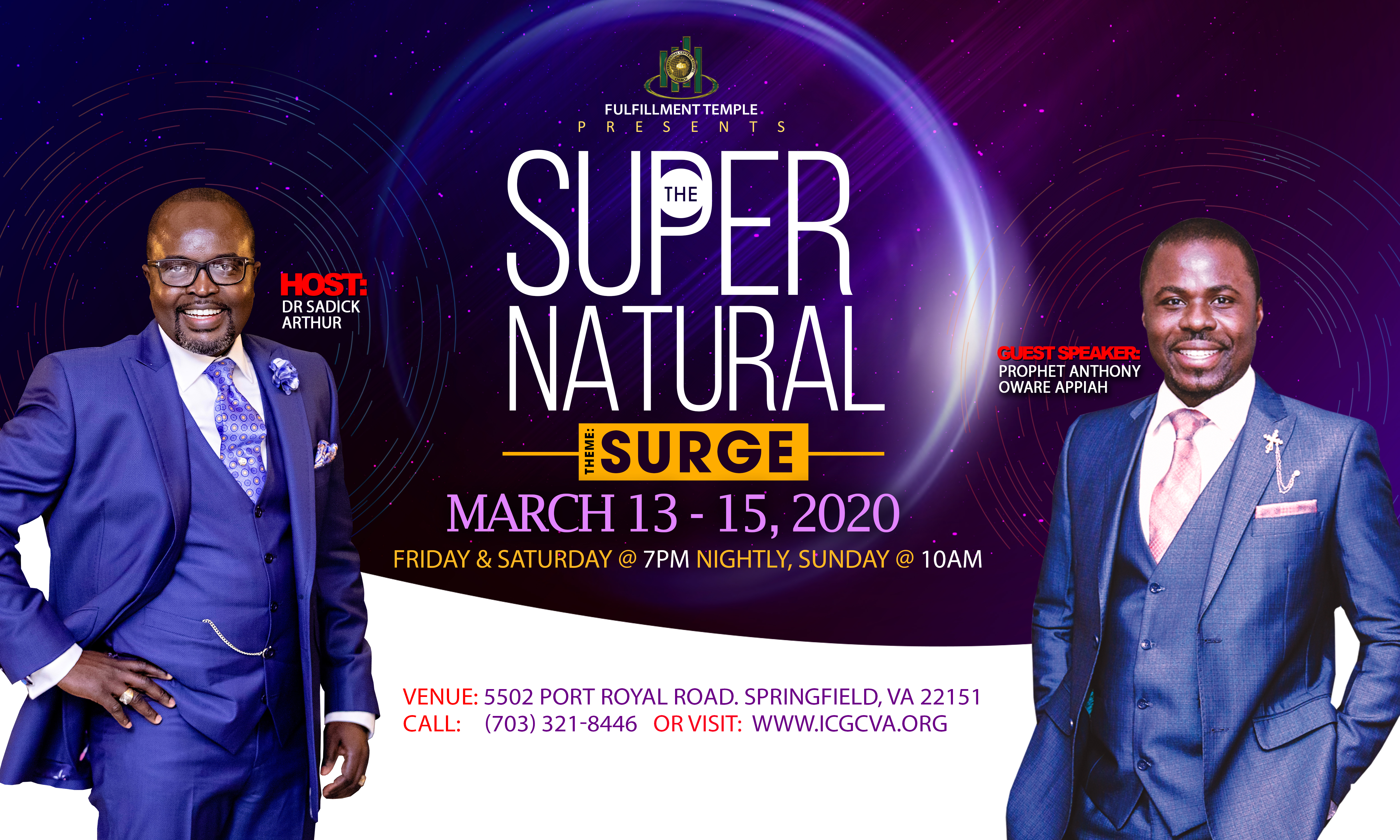 3 days of power, 3 days of presence, 3 days of prophecies with Prophet Anthony Oware Appiah. From Friday, March 13 to Sunday, March 15, 2020. This is going to be a divine encounter that you cannot afford to miss even a day.